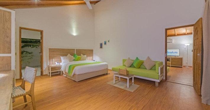 Descriere hotel: Innahura Maldives Resort este alegerea ideala pentru cei care vor sa aiba un sejur de neuitat, in mijlocul unui paradis exotic. Inconjurat de ape turcoaz si plaje cu nisip fin, resortul ofera oaspetilor servicii de cea mai buna calitate, multumind astfel chiar si cei mai pretentiosi clienti.Localizare: Este situat in Atolul Lhaviyani, la o distanta de 40 de minute de parcurs cu hidroavionul, fata de Aeroportul International Valena.
