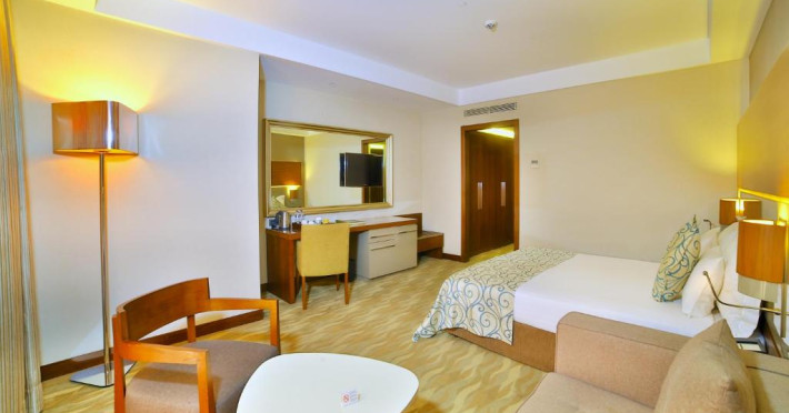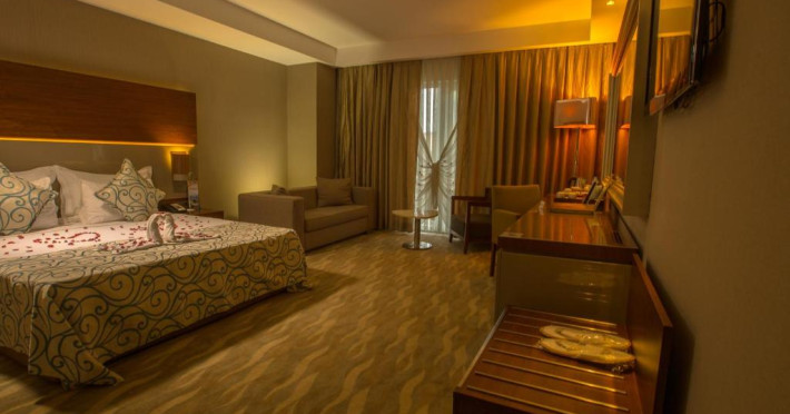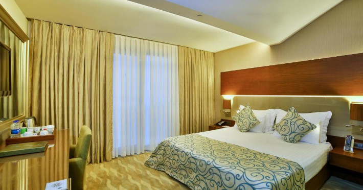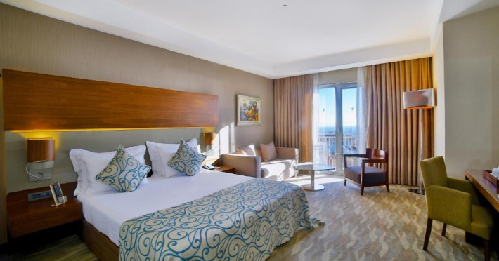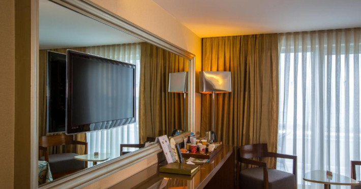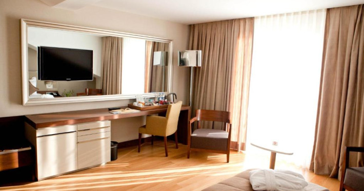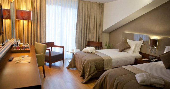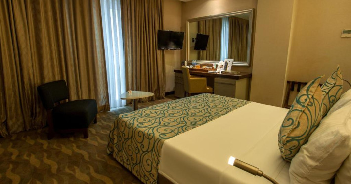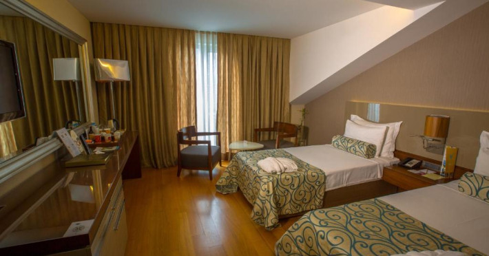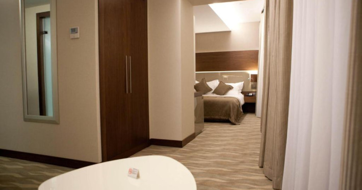 Fiecare cameră confortabilă de la Innova are pat foarte lung, decor elegant și mobilier modern. Toate unitățile de cazare sunt dotate cu aer condiționat și TV LED.
