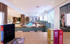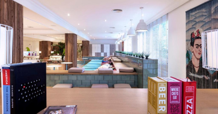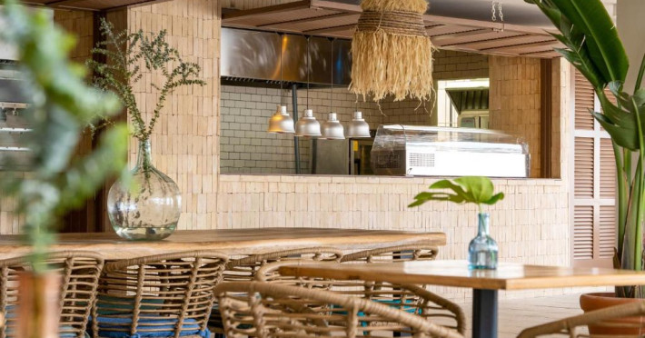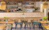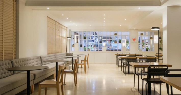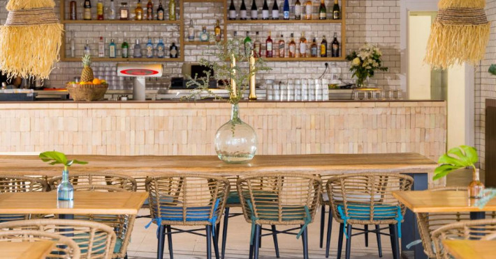 Hotelul are restaurant tip bufet și bar, care servește mancăruri din bucătăria mediteraneană și micul dejun pe tot parcursul zilei, la cerere. Rooftop Nine are vedere la apusul de soare de pe insulă.