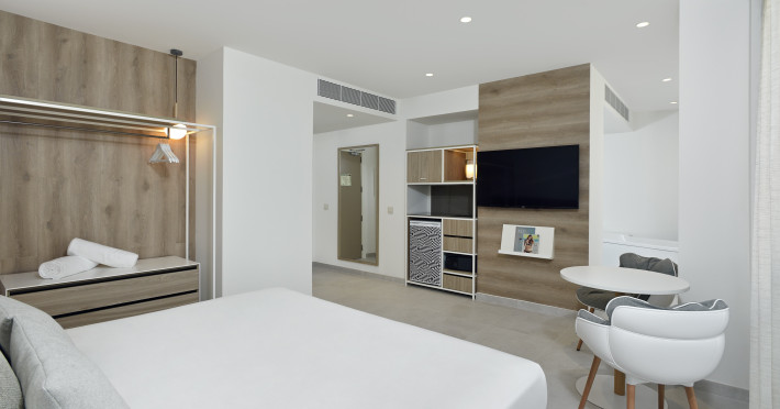 About 150 m from a beach lies the hotel Innside CALVIA BEACH. The city centre is around 18 km away. The hotel has a 24h reception, Wi-Fi as well as a shop. At the pool, deck chairs and parasols are available for free. Furthermore, you can relax outdoors on the terrace. Your valuables can be stored in the hotel safe. If necessary, you can contact the medical centre (for a fee). If you want to explore the holiday region, you can use the car rental service close to the hotel (extra fee). Pets like cats and dogs are allowed in the hotel (on request) . The hotel requires that all guests pay a deposit upon arrival. Due to its barrier-free facilities , such as wheelchair-accessible bathrooms, the hotel is also suitable for wheelchair users. Catering Breakfast is offered from the buffet. Dinner is also served as a buffet. For the meals, there are a restaurant (Mediterranean and gluten-free dishes) and the pool bar. Distances