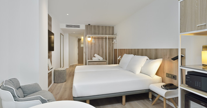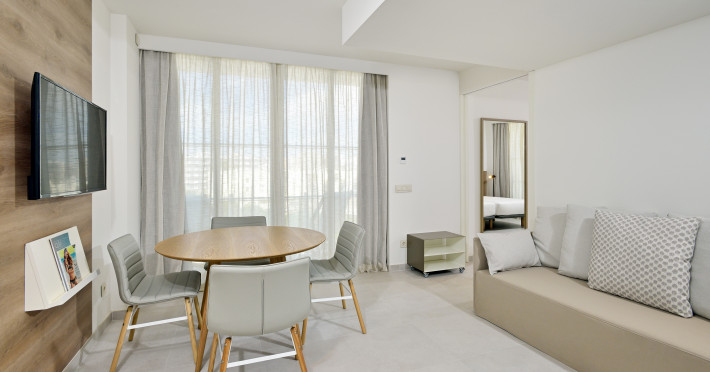 About 150 m from a beach lies the hotel Innside CALVIA BEACH. The city centre is around 18 km away. The hotel has a 24h reception, Wi-Fi as well as a shop. At the pool, deck chairs and parasols are available for free. Furthermore, you can relax outdoors on the terrace. Your valuables can be stored in the hotel safe. If necessary, you can contact the medical centre (for a fee). If you want to explore the holiday region, you can use the car rental service close to the hotel (extra fee). Pets like cats and dogs are allowed in the hotel (on request) . The hotel requires that all guests pay a deposit upon arrival. Due to its barrier-free facilities , such as wheelchair-accessible bathrooms, the hotel is also suitable for wheelchair users. Catering Breakfast is offered from the buffet. Dinner is also served as a buffet. For the meals, there are a restaurant (Mediterranean and gluten-free dishes) and the pool bar. Distances- Airport: approximately at 26,6 km