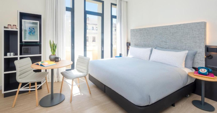 Cazarea oferă un mic dejun continental sau tip bufet. Oaspeții se pot bucura de terasa hotelului, care are vedere la animata Gran Vía de mai jos. Printre facilitățile acestei proprietăți se numără o recepție deschisă nonstop și un serviciu de concierge.