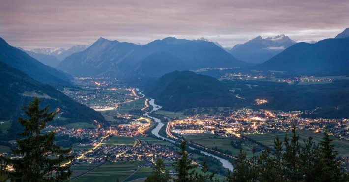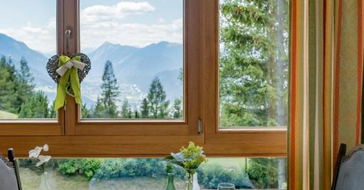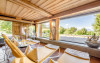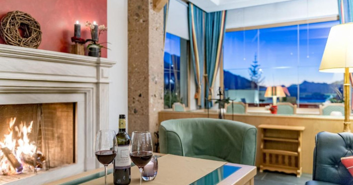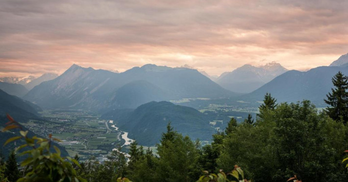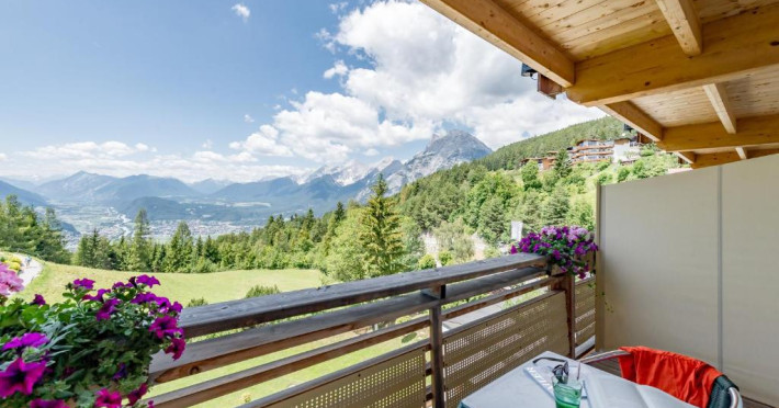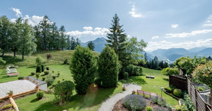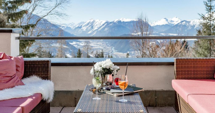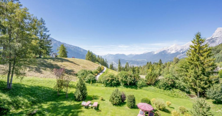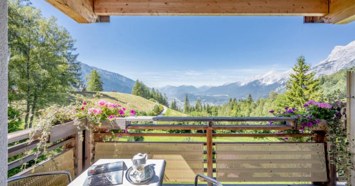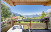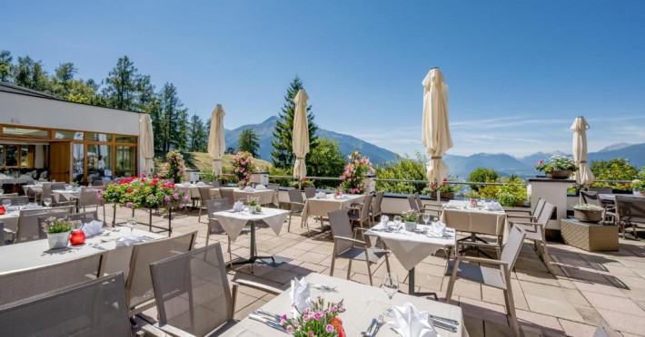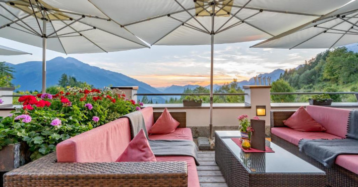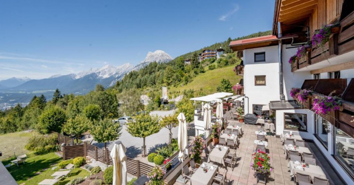 Terasa mare la soare de la Inntaler Hof are vedere la munți și la vale.