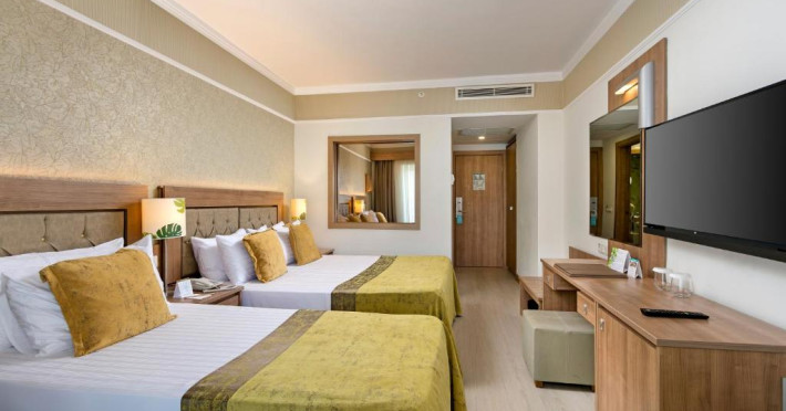 Localizare: hotelul este situat in apropiere de Plaja Kadriye si la 17 km de Aeroportul Antalya. Facilitati hotel: 4 piscine, acces imediat la plaja, camere de familie, WiFi gratuit inclus, transfer de la si/sau la aeroport, spa si centru de wellness, parcare gratuita, sala de fitness, bar, zona de plaja privata. Dotari camere: balcon, vedere la gradina, aer conditionat, baie privata, TV cu ecran plat, Terasa, Minibar, WiFi gratuit. Servicii contra cost: serviciu de transfer, serviciu de curatatorie si calcatorie, snorkelling, scufundari, facilitati sporturi nautice, pescuit, echipament tenis, biliard, masaj, sala fitness, spa si centru wellness, sauna, jacuzzi. IMPORTANT: Descrierea hotelului se bazeaza pe detaliile disponibile la momentul pregatirii tarifelor pentru sezonul turistic ce urmeaza a se desfasura si are caracter pur informativ. Hotelul poate aduce modificari de structura, denumiri camere, tip serivicii incluse/neincluse si altele, fara a notifica in prealabil. Pentru informatiile oficiale va rugam sa consultati website-ul hoteluluiIMPORTANT