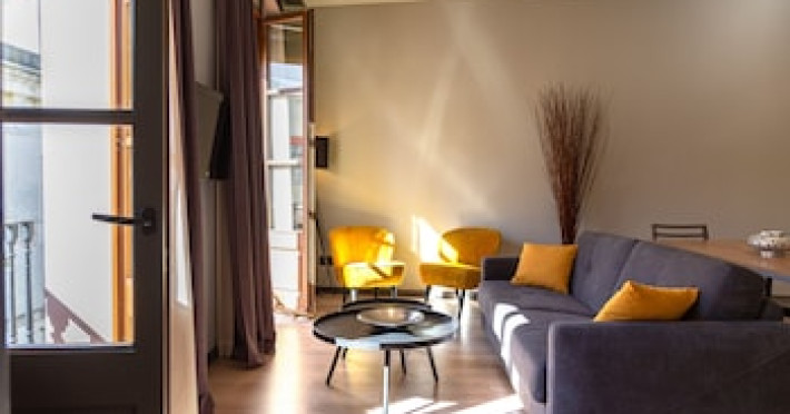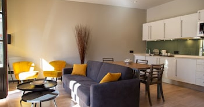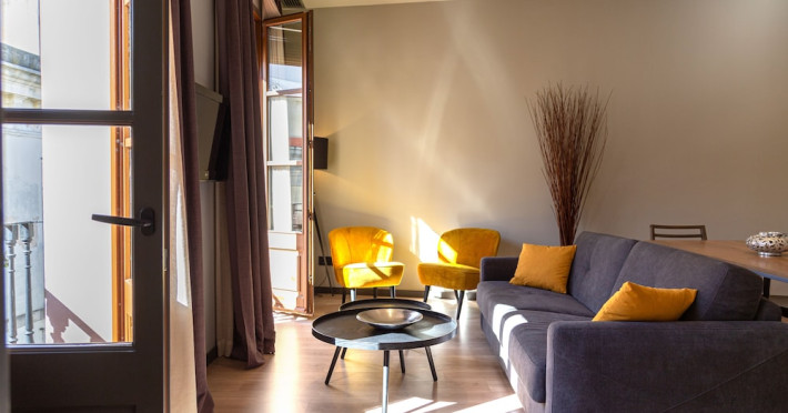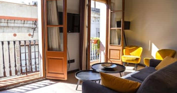 <strong>Property Location</strong><p>Located in Barcelona (Downtown Barcelona), Inspired Apartments is a 5-minute walk from Barcelona Cathedral and 6 minutes by foot from La Rambla. This upscale aparthotel is 0.4 mi (0.7 km) from Port Vell and 0.8 mi (1.3 km) from Picasso Museum.<br> Distances are displayed to the nearest 0.1 mile and kilometer. <br /> <p>Barcelona City Council - 0.3 km / 0.2 mi <br /> Basilica de Santa Maria del Mar - 0.4 km / 0.2 mi <br /> Barcelona History Museum - 0.4 km / 0.3 mi <br /> Barcelona Cathedral - 0.4 km / 0.3 mi <br /> Placa del Rei - 0.4 km / 0.3 mi <br /> Plaça Reial - 0.5 km / 0.3 mi <br /> Port de Barcelona - 0.5 km / 0.3 mi <br /> La Rambla - 0.5 km / 0.3 mi <br /> Port Vell - 0.5 km / 0.3 mi <br /> Portal de l'Angel - 0.6 km / 0.4 mi <br /> Picasso Museum - 0.6 km / 0.4 mi <br /> Barcelona Wax Museum - 0.6 km / 0.4 mi <br /> Gran Teatre del Liceu - 0.7 km / 0.4 mi <br /> Palau Güell - 0.7 km / 0.4 mi <br /> Mercat del Born - 0.8 km / 0.5 mi <br /> </p><p>The nearest major airport is Barcelona El Prat Airport (BCN) - 16.3 km / 10.1 mi</p><br> <strong>Rooms</strong><p>Make yourself at home in one of the 5 individually decorated guestrooms, featuring kitchens with refrigerators and stovetops. Your memory foam bed comes with premium bedding. Flat-screen televisions with digital programming provide entertainment, while complimentary wireless internet access keeps you connected. Conveniences include safes and separate sitting areas, and housekeeping is provided weekly.<p> <strong>Business, Other Amenities</strong> <p>Featured amenities include multilingual staff, luggage storage, and laundry facilities.<p><strong>Property Location</strong><p>Located in Barcelona (Downtown Barcelona), Inspired Apartments is a 5-minute walk from Barcelona Cathedral and 6 minutes by foot from La Rambla. This upscale aparthotel is 0.4 mi (0.7 km) from Port Vell and 0.8 mi (1.3 km) from Picasso Museum.<br> Distances are displayed to the nearest 0.1 mile and kilometer. <br /> <p>Barcelona City Council - 0.3 km / 0.2 mi <br /> Basilica de Santa Maria del Mar - 0.4 km / 0.2 mi <br /> Barcelona History Museum - 0.4 km / 0.3 mi <br /> Barcelona Cathedral - 0.4 km / 0.3 mi <br /> Placa del Rei - 0.4 km / 0.3 mi <br /> Plaça Reial - 0.5 km / 0.3 mi <br /> Port de Barcelona - 0.5 km / 0.3 mi <br /> La Rambla - 0.5 km / 0.3 mi <br /> Port Vell - 0.5 km / 0.3 mi <br /> Portal de l'Angel - 0.6 km / 0.4 mi <br /> Picasso Museum - 0.6 km / 0.4 mi <br /> Barcelona Wax Museum - 0.6 km / 0.4 mi <br /> Gran Teatre del Liceu - 0.7 km / 0.4 mi <br /> Palau Güell - 0.7 km / 0.4 mi <br /> Mercat del Born - 0.8 km / 0.5 mi <br /> </p><p>The nearest major airport is Barcelona El Prat Airport (BCN) - 16.3 km / 10.1 mi</p><br> <strong>Rooms</strong><p>Make yourself at home in one of the 5 individually decorated guestrooms, featuring kitchens with refrigerators and stovetops. Your memory foam bed comes with premium bedding. Flat-screen televisions with digital programming provide entertainment, while complimentary wireless internet access keeps you connected. Conveniences include safes and separate sitting areas, and housekeeping is provided weekly.<p> <strong>Business, Other Amenities</strong> <p>Featured amenities include multilingual staff, luggage storage, and laundry facilities.<p>