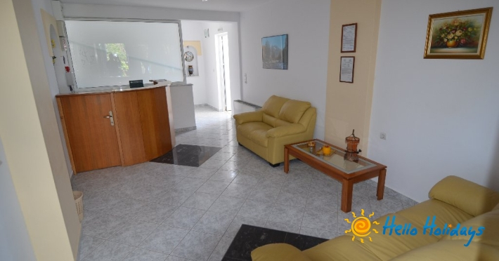 Dotari camere: studiourile sunt dotate cu doua paturi de o persoana si o sofa pentru a treia persoana, masa cu scaune, chicineta echipata cu plita de gatit si frigider, TV, aer conditionat (contra cost, 7 Euro/ zi), baie cu dus si balcon.