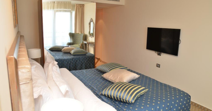 Camera family este formata din doua camere duble interconectate, dotate cu paturi matrimoniale. Camerele beneficiaza de vedere laterala la mare, balcon, AC, telefon, televizor, internet, minibar. Numarul maxim de persoane admisa este de 4 adulti. Suprafata camerelor este de aproximativ 40 mp.
