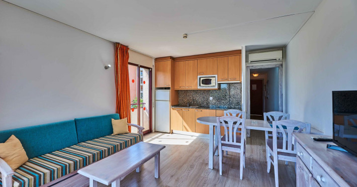 Strategically located in the tourist resort of Salou, on the Costa Daurada, this comfortable aparthotel is just 500 metres from Capellans white, sandy beach and a short walk from the town centre, with an impressive offer of restaurants, bars and stores, allowing its guests to have a relaxing time during their holidays either if they come with the whole family, with friends or as a couple. The famous Port Aventura theme park is in the nearby area and Reus airport is only 10 kilometres away from the premises. The en-suite, fully equipped studios include a kitchenette for guests to prepare their own food, as well as all the necessary amenities for a comfortable stay. Guests can enjoy the interesting leisure and dining offer at the premises, as it includes a magnificent swimming pool and several bars and a buffet service restaurant for added comfort..This apartment complex is located in the tourist centre of Salou. The town centre, offering plenty of shopping and entertainment venues, is only a few minutes walk away. Reus Airport is about 11 km away and Barcelona-El Prat Airport is around 103 km away..The tastefully decorated apartments include combined living and sleeping quarters, a separate bedroom, as well as an en suite bathroom with a shower and a bath. Apartments also feature a safe, a kitchenette with a fridge and a microwave. Moreover, there is air conditioning and a balcony or terrace. All rooms are cleaned on departure..The hotel accepts American Express, MasterCard and VISA as methods of payment..The establishment houses a vast pool and garden complex with a freshwater swimming pool, a childrens swimming area, a poolside snack bar and a sun terrace with sun loungers and parasols. An entertainment programme for adults provides variation on a daily basis. The beautiful sandy beach of Capellans is only 500 m away and offers sun loungers and parasols..A deposit is required on arrival. Keys can be picked up at 12 Vendrell St., telephone 977 35 24 01.Datorita dinamicitatii domeniului disponibilitatea ofertelor se modifica de la un moment la altul. De aceea ofertele sunt valabile in limita locurilor disponibile. Agentia nu este responsabila pentru eventualele neconcordante care pot aparea intre informatiile privind tarifele si alte detalii din site si informatiile primite in agentie. In aceste cazuri vor avea prioritate, intotdeauna, informatiile primite in agentie.