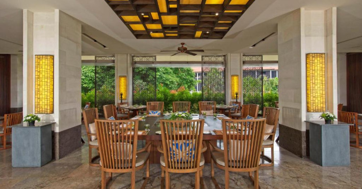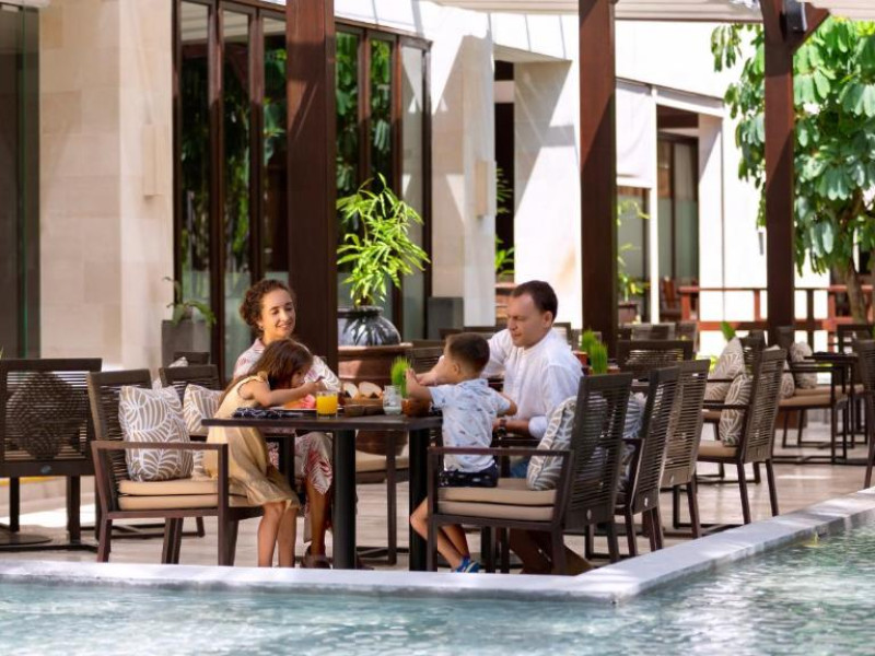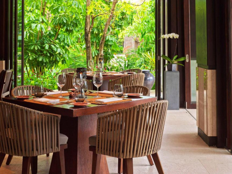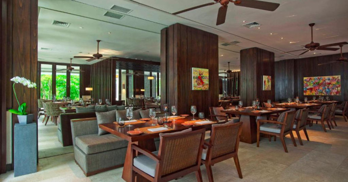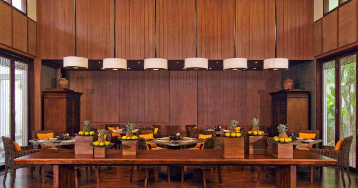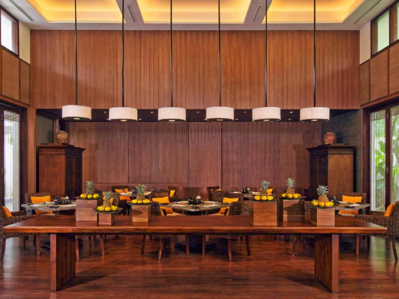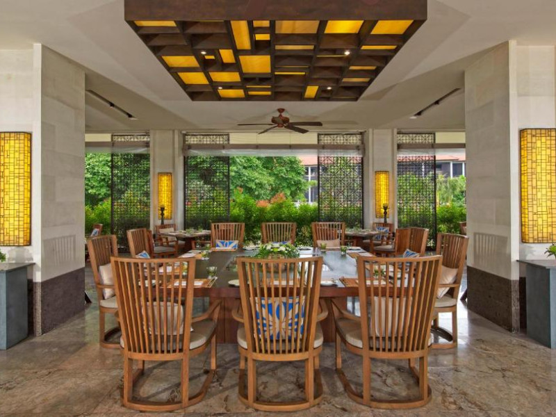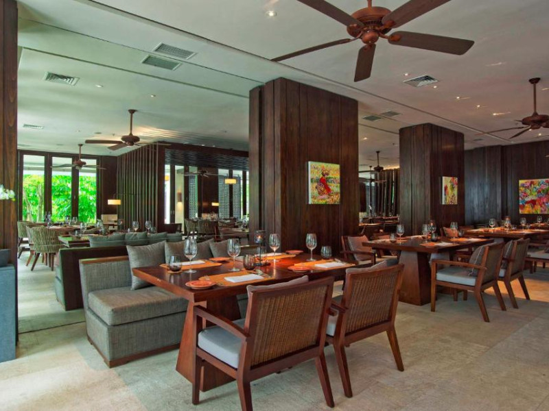 Nyala Beach Club & Grill, certificat Halal, este specializat in preparate din fructe de mare și delicii la grătar, in timp ce Layang Layang servește preparate din bucătăria indoneziană și occidentală. Există, de asemenea, un lounge unde oaspeții se pot bucura de cafea și ceai după-amiaza.
