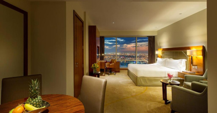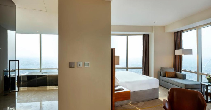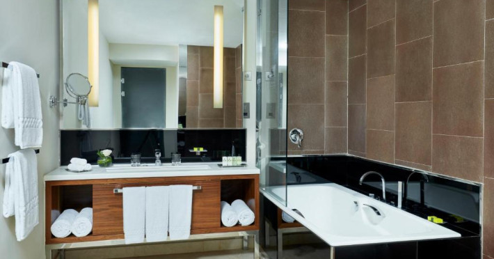 Camerele de la InterContinental Doha The City au aer și baie privată cu articole de toaletă de lux și uscător de păr. Unele camere au living separat sau vezi la West Bay.