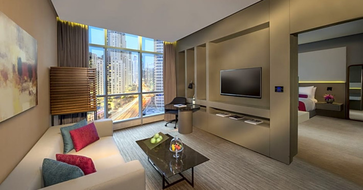 AED20 Tourism Dirham fees per bedroom per night is applicable for the first 30 consecutive nights as per Dubai Executive Council Resolution N (2) of 2014. This fee will be collected from the guest upon check-in and will be added to the guests’ bill.