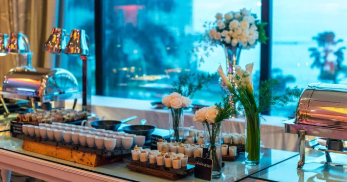 Restaurantul Bay View este specializat in servicii tip bufet, organizează seri culturale și are vedere la portul de agrement. Acesta servește mancăruri tipice panameze, fructe de mare, bucătărie spaniolă și oferă o mare varietate de deserturi. Barul din hol oferă oaspeților o varietate de băuturi.