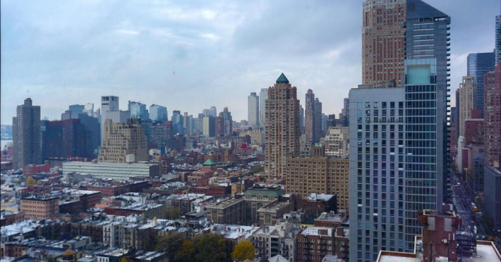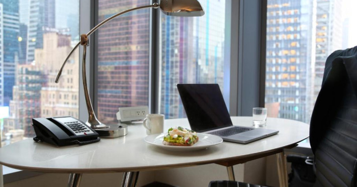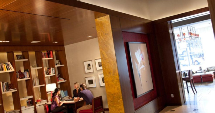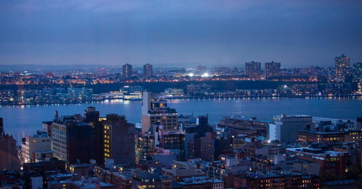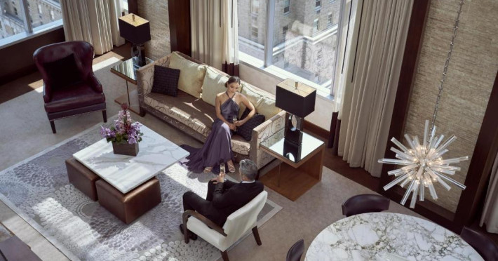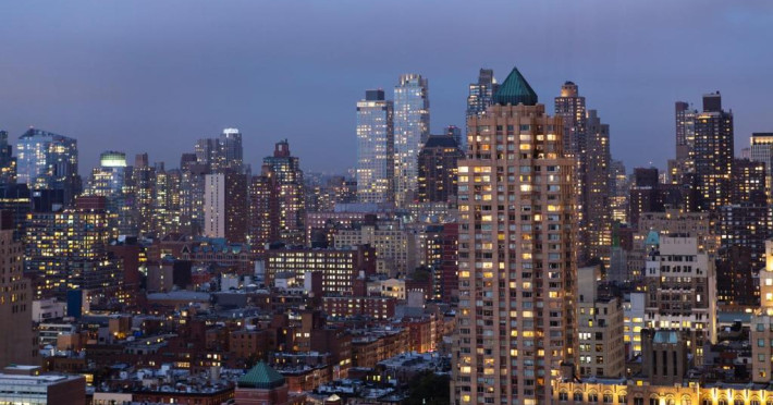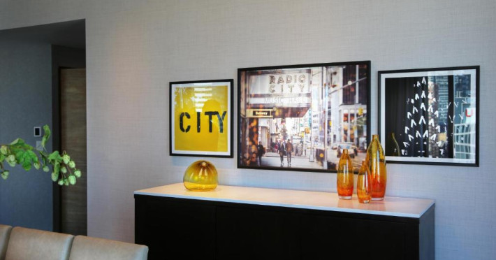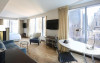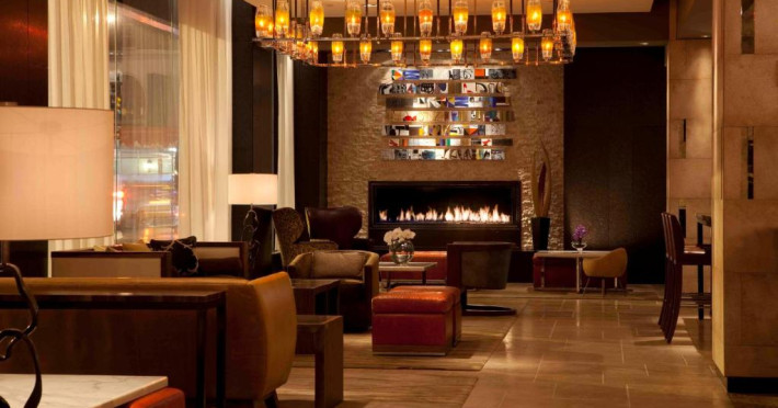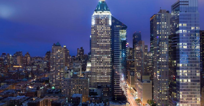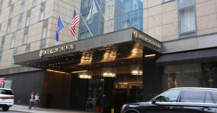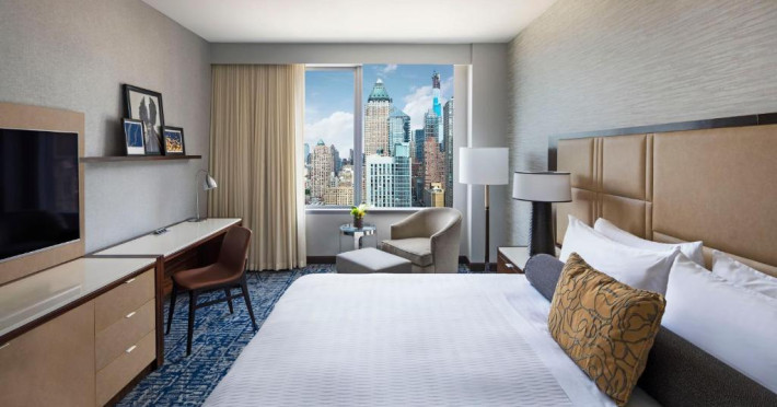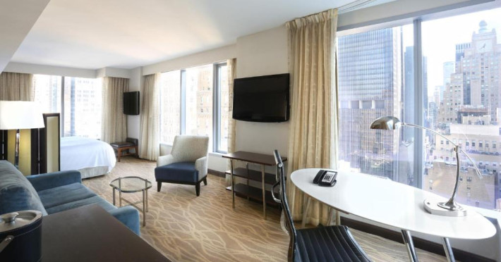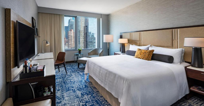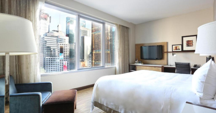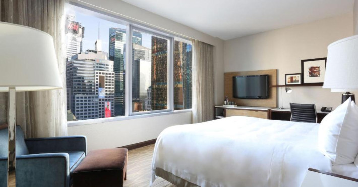InterContinental New York Times Square este intins pe 36 de etaje și oferă unități de cazare cu ferestre din podea pană in tavan, cu vedere la orizontul Manhattanului, raul Hudson și districtul teatrului Broadway.