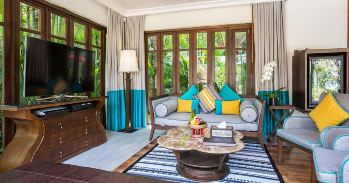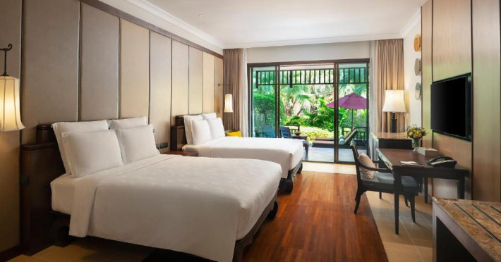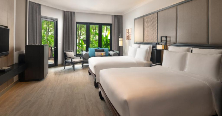 Combinand decorul asiatic tradițional cu facilitățile moderne, camerele mari au WiFi gratuit, TV cu ecran plat, DVD player și facilități pentru prepararea de ceai/cafea. Balconul privat este spatios si oferă vedere la grădină sau la ocean. Oaspeții care stau in camerele Club se bucură, de asemenea, de privilegii exclusive și acces la Club Lounge.