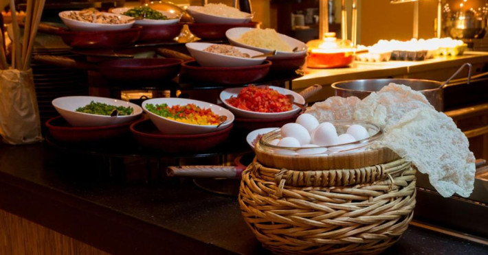 Pentru cină, oaspetii pot alege intre Restaurantul Corniche in stil bufet si Bourj Al Hamam, care oferă mancăruri libaneze in aer liber. In crama de vinuri Cote D'Or sunt servite mancăruri fine si vinuri de calitate.