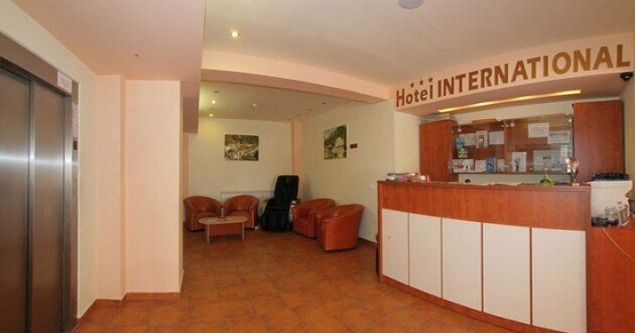 Hotelul International este amplasat in centrul nou al statiunii Baile Herculane. Baile Herculane este asezata in partea sud-vestica a tarii, pe culoarul raului Cerna, strajuita de Muntii Cernei si Muntii Domogled, fiind una din cele mai vechi statiuni balneare ale lumii cu o vechime de aproape doua milenii.Dotari generale: receptie deschisa nonstop, seif la receptie, restaurant, bar, terasa, piscina (bazin termal / agrement acoperit), baza de tratament, centru Spa (sauna, jacuzzi, masaj, fitness), sala de conferinte si parcare.