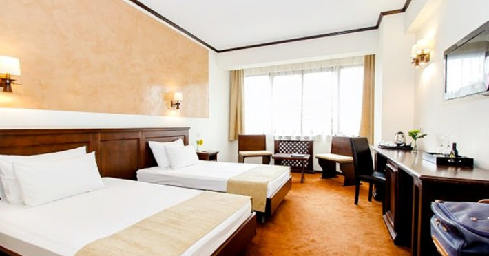 Guests have a choice of 4 junior suites, 35 suites, 2 apartments, 10 single rooms and 19 double rooms located in an 8-storey main building and a 4-storey auxiliary building. Guests are warmly welcomed by English-speaking staff at the 24-hour reception desk in the lobby. Check-in/check-out service is available round the clock. Amenities include a cloakroom, baggage storage service, safe and cash machine. Wireless internet access allows guests to stay connected while on holiday. The tour desk offers assistance with booking excursions. The hotel has a range of facilities for guests with disabilities. A lift and wheelchair-accessible facilities are available. There are a number of shops as well. A garden provides extra space for rest and relaxation in the open air. Additional amenities include a newspaper stand and a TV room. Guests arriving by car can park their vehicles in the garage or in the car park (for a fee). Other services include a 24-hour security service, a babysitting service, a childcare service, a car hire service, medical assistance, a transfer service, room service, a laundry service, a coin-operated laundry and a hotel shuttle bus. Complimentary newspapers are available. The business centre is on hand for guests business requirements and provides a fax machine.Datorita dinamicitatii domeniului disponibilitatea ofertelor se modifica de la un moment la altul. De aceea ofertele sunt valabile in limita locurilor disponibile. Agentia nu este responsabila pentru eventualele neconcordante care pot aparea intre informatiile privind tarifele si alte detalii din site si informatiile primite in agentie. In aceste cazuri vor avea prioritate, intotdeauna, informatiile primite in agentie.