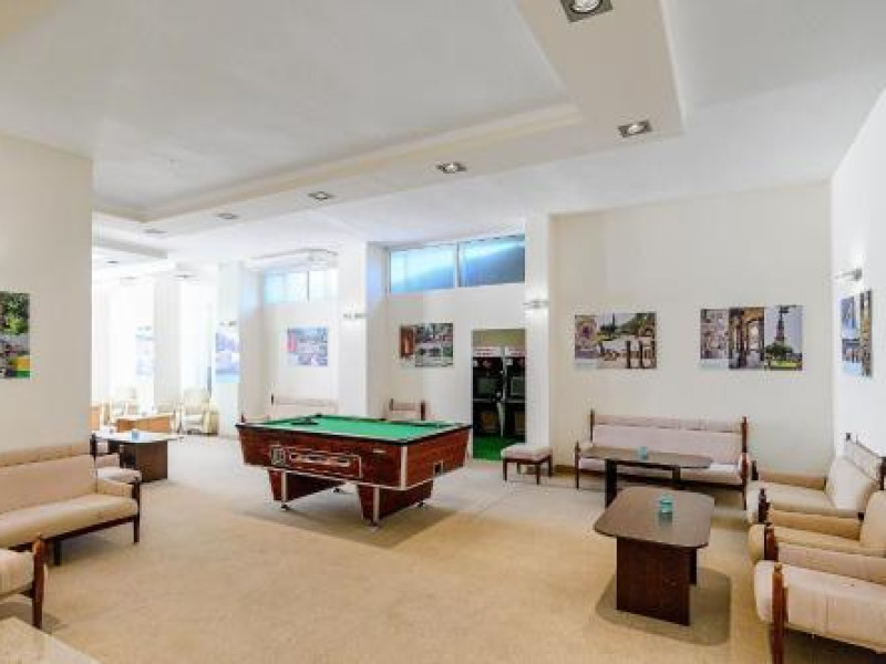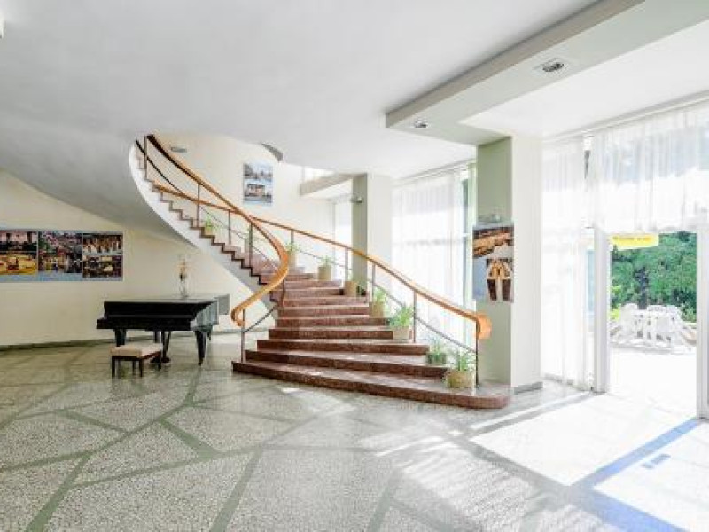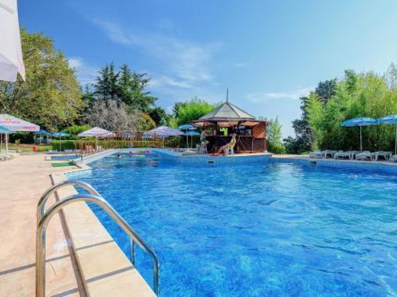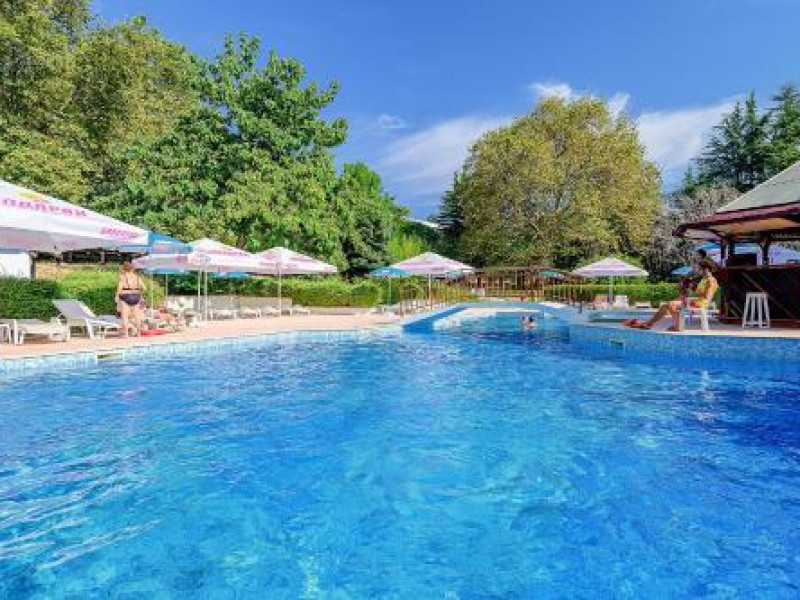 International House of Journalists is set amidst its own beautiful park-botanical garden, 200 metres away from the large beach Kabakum in the peaceful Chaika area. The 45 decares-park is suitable for many sports activities as well as for various recreational therapies. On site there is an outdoor pool with sun loungers and parasols available free of charge. Free WiFi is available in all areas and free parking is offered. All rooms are equipped with air conditioning, minifridge, TV set with cable channels, telephone, balcony and a bathroom with a shower. On the ground floor of International House of Journalists there is a lobby bar serving and abundance of drinks, as well as a restaurant with 150 seats and a terrace under the trees with 80-100 seats. A pool bar is available for refreshing alcoholic and soft beverages. Guests can also play billiards, table tennis and mini football. The centre of Golden Sands is reachable within 3 km, where there is an abundance of night life, bars, restaurants and shops. The bus stop with regular services to Varna and Golden Sands is just a few steps from the hotel. Varna is 16 km away and Varna Airport is 20 km away.International House of Journalists is set amidst its own beautiful park-botanical garden, 200 metres away from the large beach Kabakum in the peaceful Chaika area. The 45 decares-park is suitable for many sports activities as well as for various recreational therapies. On site there is an outdoor pool with sun loungers and parasols available free of charge. Free WiFi is available in all areas and free parking is offered. All rooms are equipped with air conditioning, minifridge, TV set with cable channels, telephone, balcony and a bathroom with a shower. On the ground floor of International House of Journalists there is a lobby bar serving and abundance of drinks, as well as a restaurant with 150 seats and a terrace under the trees with 80-100 seats. A pool bar is available for refreshing alcoholic and soft beverages. Guests can also play billiards, table tennis and mini football. The centre of Golden Sands is reachable within 3 km, where there is an abundance of night life, bars, restaurants and shops. The bus stop with regular services to Varna and Golden Sands is just a few steps from the hotel. Varna is 16 km away and Varna Airport is 20 km away.