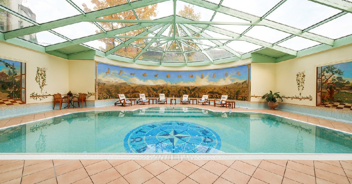 Aici regasim un ambient linistitor, evidentiat de o tema zodiacala unica, un acoperis de sticla uimitor deasupra piscinei de 50 de metri patrati, si un decor modern cu o zona cu apa sarata de 130 metri patrati si acces in aer liber cu zona de sezlonguri si jacuzzi.