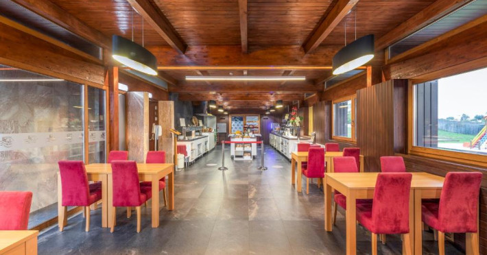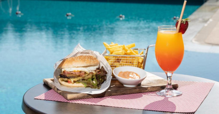 Oaspeții pot savura micul dejun, pranzul și cina in restaurantul cu ferestre mari și vedere la piscină. Barul servește o varietate de băuturi, in interior sau pe terasa unde se poate face plajă.