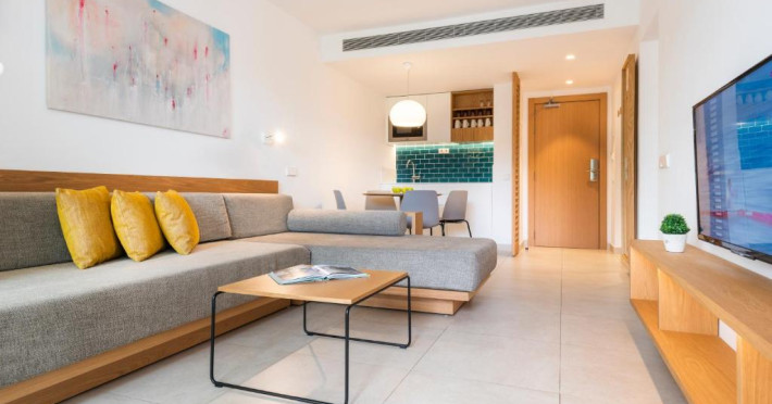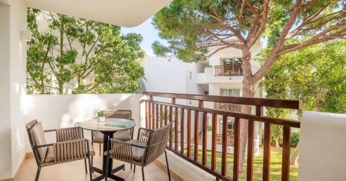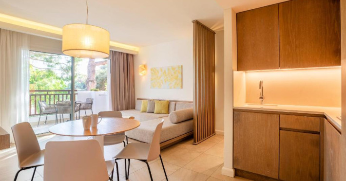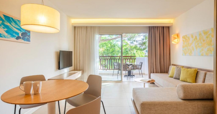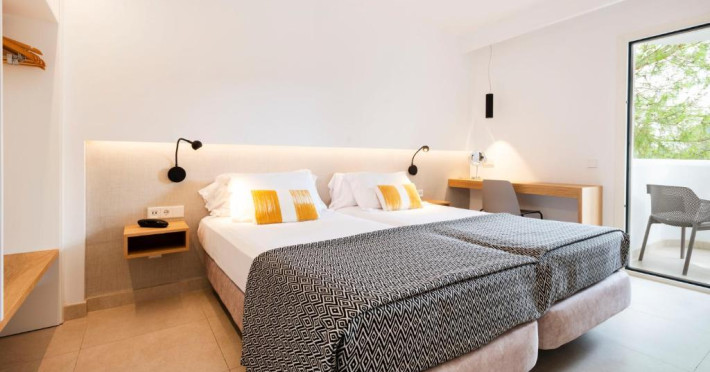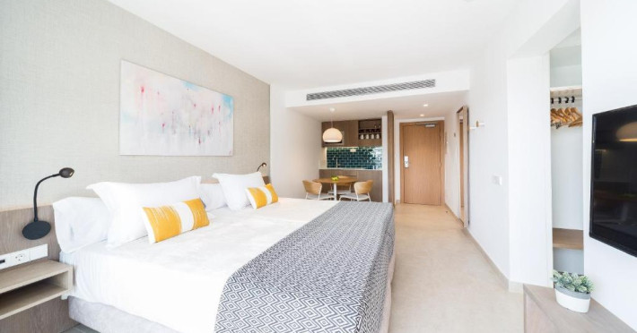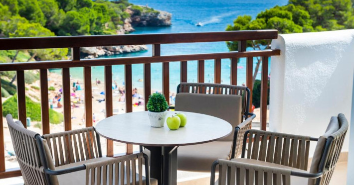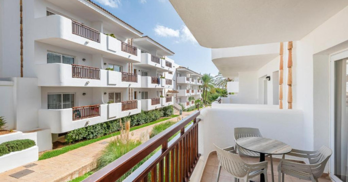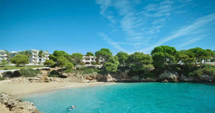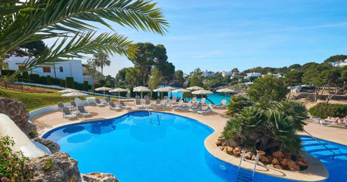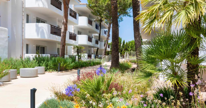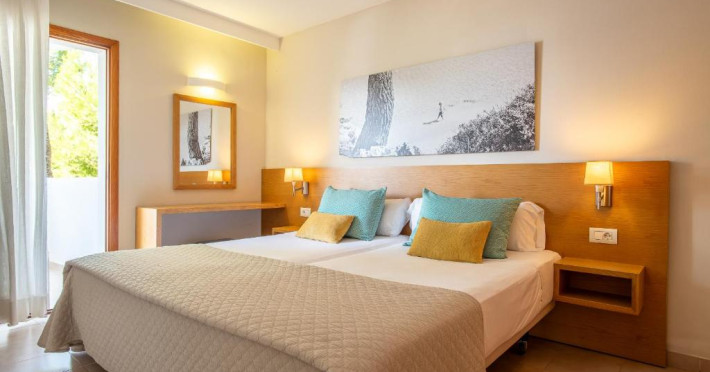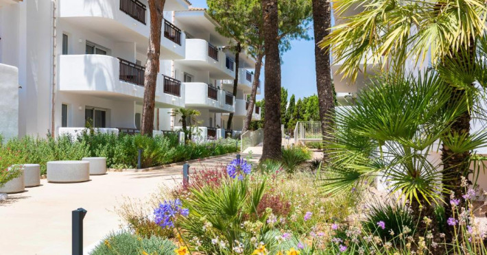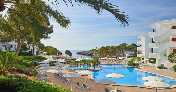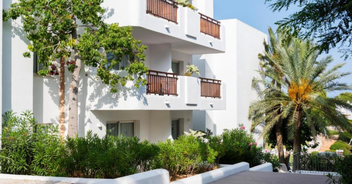 Situat pe malul mării pe plaja Cala Esmeralda, acest hotel de apartamente oferă piscine in aer liber și Wi-Fi gratuit in intreaga proprietate. Toate apartamentele au balcon privat cu vedere la mare, piscină sau grădină.