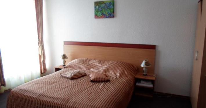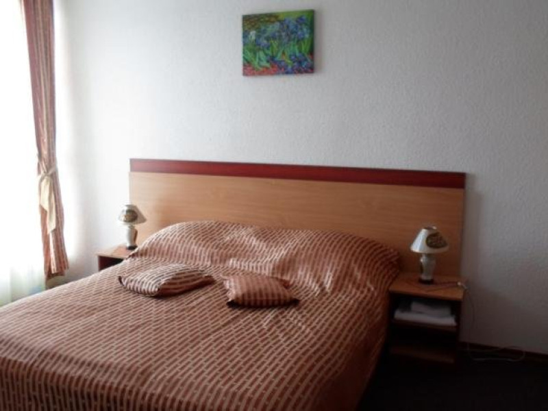 Dotari generale:restaurant -240 locuri, parcare proprie, pastrare obiecte de valoare, bar de zi- 40 locuri, lift, magazin, se accepta carti de credit.Dotari camere:TV, frigider, baie cu dus, telefon.Numr total camere:140Tratament:Baza de tratament este dotata cu instalatii moderne pentru: bai la cada cu apa minerala incalzita, electroterapie, hidroterapie (afuziuni, bai de plante), masaj, sala de gimnastica medicala si gimnastica aerobica, impachetari cu parafina, mofete artificiale; profil si indicatii de tratament: afectiuni ale aparatului cardio-vascular, afectiuni ale aparatului locomotor, afectiuni neurologice, boli asociate (respiratorii, endocrine, digestive, metabolice, de nutritie).Datorita dinamicitatii domeniului disponibilitatea ofertelor se modifica de la un moment la altul. De aceea ofertele sunt valabile in limita locurilor disponibile. Agentia nu este responsabila pentru eventualele neconcordante care pot aparea intre informatiile privind tarifele si alte detalii din site si informatiile primite in agentie. In aceste cazuri vor avea prioritate, intotdeauna, informatiile primite in agentie.