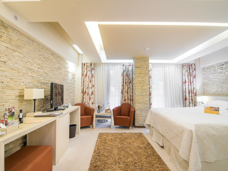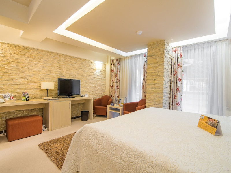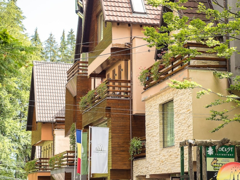 The boutique-style Ioana Hotel can be found in quiet surroundings in the Bucegi mountains above Sinaia. It offers panoramic views. All rooms at the Hotel Ioana are tastefully styled in pastel colors and feature high-quality beds and a balcony, as well as individual decors. Each of them comes equipped with a flat-screen TV. Bathrobes and slippers can be found in the elegant bathroom. The little ones spend their time in the childrens playroom. The Forest Restaurant serves international cuisine and local specialties to guests who dine surrounded by growing fir trees. You can also relax at the Focus Bar and Lounge. There is a cable car only 984 feet away from the Ioana Hotel, and the Peles and Pelisor Castles can be reached on foot within 30 minutes. A minibus stops right in front of the hotel but the center of Sinaia is also reachable on foot within 40 minutes.WiFi is available in all areas and is free of charge. Free private parking is available on site (reservation is not needed). Pets are not allowed. Children of all ages are allowed. Children 3 and under stay for free when using an available crib. Children 6 and under stay for free when using an existing bed. Children from 7 to 11 years old stay for 100Â lei per person, per night when using an existing bed. Children 11 and under stay for 100Â lei per person, per night when using an available extra bed. People 12 and up stay for 200Â lei per person, per night when using an available extra bed. Any type of extra bed or crib is upon request and needs to be confirmed by management. Additional fees are not calculated automatically in the total cost and will have to be paid for separately during your stay.Checkin Time: 15:00Checkin End Time: 23:30Checkout From: 06:30Checkout End Time: 12:00Hotel important information: Please inform Ioana Hotel of your expected arrival time in advance. You can use the Special Requests box when booking, or contact the property directly using the contact details in your confirmation. In response to the coronavirus (COVID-19), additional safety and sanitation measures are in effect at this property. Guests are required to show a photo ID and credit card upon check-in. Please note that all Special Requests are subject to availability and additional charges may apply. Spa and gym facilities at this property are unavailable due to the coronavirus (COVID-19). Due to the coronavirus (COVID-19), wearing a face mask is mandatory in all indoor common areas. Payment is made at the hotel reception in local currency RON ( Lei ) based on the current exchange rate on the day of payment.Datorita dinamicitatii domeniului disponibilitatea ofertelor se modifica de la un moment la altul. De aceea ofertele sunt valabile in limita locurilor disponibile. Agentia nu este responsabila pentru eventualele neconcordante care pot aparea intre informatiile privind tarifele si alte detalii din site si informatiile primite in agentie. In aceste cazuri vor avea prioritate, intotdeauna, informatiile primite in agentie.