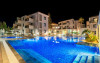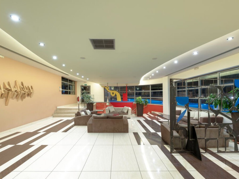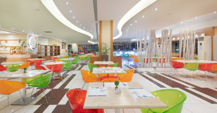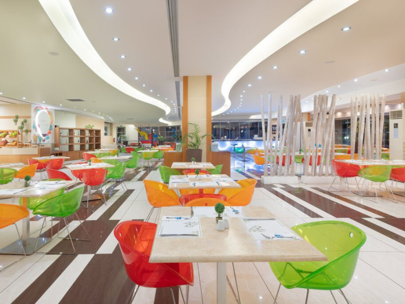 Facilitati hotel: restaurant bufet, taverna a la carte, bar, bar la piscina, piscina, umbrele si sezlonguri (gratuite la piscina si contra cost pe plaja), acces internet WiFi, centru fitness.