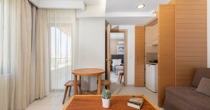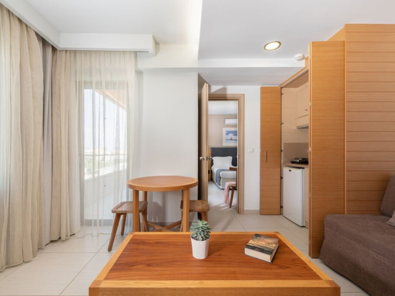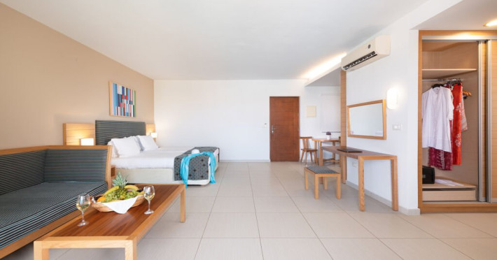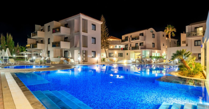 Hotelul a fost renovat integral in 2009.Localizare: la aproximativ 200 m de plaja de nisip si pietricele din Agia Marina si 22 km de aeroportul din Chania. Camerele din oferta noastra sunt situate in cladirea anexa conectata printr-un pod de cladirea principala.