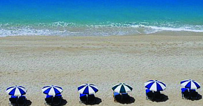 Pe plajă există șezlonguri și umbrele de plajă contra cost.