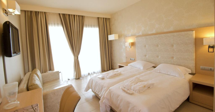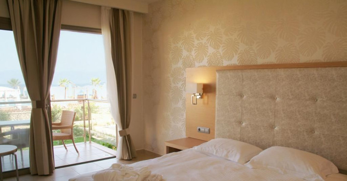Sunt disponibile 36 camere. Camerele de la Ionian Emerald Resort sunt dotate cu aer condiționat, Tv cu canale prin satelit și seif. Fiecare cameră dispune de cană pentru prepararea apei calde. Oaspeții pot solicita serviciul de room service pentru a servi masa sau diverse băuturi. Camerele au balcon cu vedere la mare, la piscină sau la grădină. În camere există baie cu cadă sau duș ce are în dotare foehn și articole de toaletă gratuite. Oaspeții au acces gratuit la serviciul Wi-fi în camere. Curățenia in cameră se face zilnic. Anumite camere au cadă cu hidromasaj care asigură un plus de confort și răsfăț. Proprietatea oferă camere pentru nefumători.