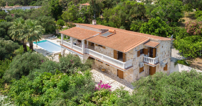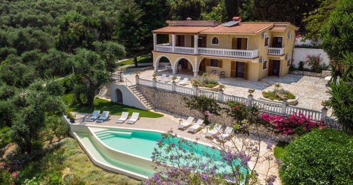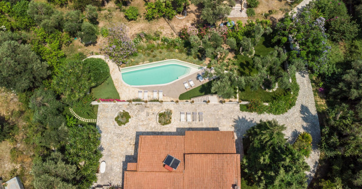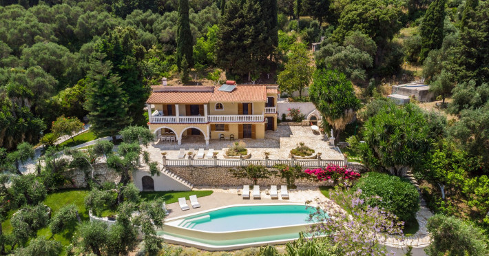 In the heart of Corfu, in a beautiful garden of 2 ½ acres overlooking the sea, full of huge and very old olive trees, palm trees, various citrus trees and other fruit trees as well, as many kinds of flowers, stand Ionian Garden Villas: Villa Olea, Villa Pietra and Villa Sol.