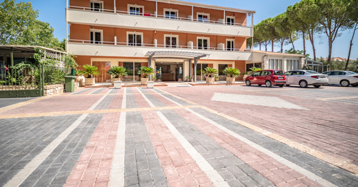In the beautiful peninsula of Paliki, the westerly part of Kefalonia, in its southernmost point, just a few meters from the charming copper-coloured "Kounopetra" beach is where you will find Ionian Sea Hotel & Aqua Park.