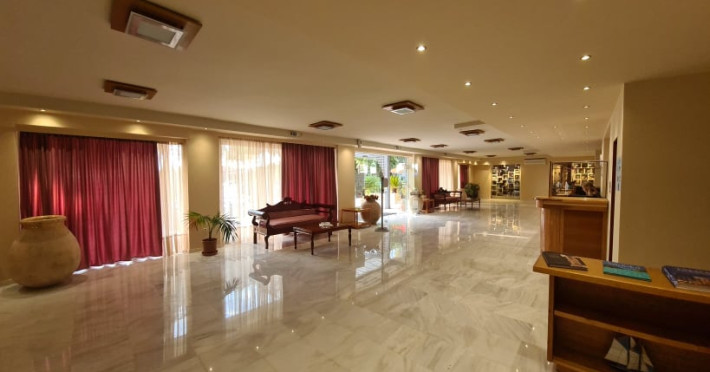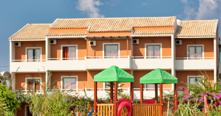 This delightful establishment has also has available to its guests a variety of facilities such as: One Restaurant and one traditional Taverna with traditional Greek cuisine, snack and pool bars, an outdoor Taverna Gym, sports facilities (football, tennis and volleyball courts), children's playground, on-site mini market and gift shop, parking lot and beautiful lush gardens.