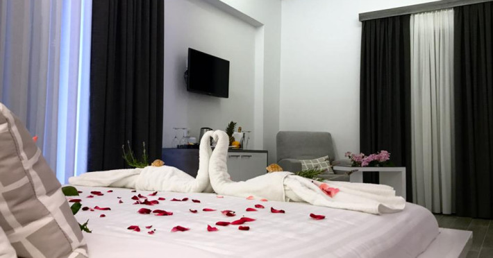 Camerele luminoase de la Ionian Suites By Bruskos sunt dotate cu aer condiționat, Tv și seif. Oaspeții au la dispoziție serviciul de room service pentru a servi masa sau diverse băuturi. Oaspeții au acces gratuit la serviciul Wi-fi în camere. În camere există baie cu duș ce are în dotare foehn și articole de toaletă gratuite. Camerele au balcon cu vedere la piscină sau la grădină. Curățenia in cameră se face zilnic. Proprietatea oferă camere pentru familie cu o suprafață mai mare și un număr mai mare de paturi față de cele standard.