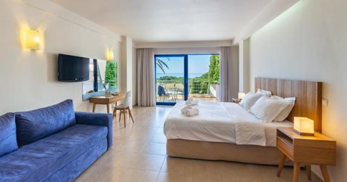 Combinand albastrul nesfarsit al Marii Ionice si verdele naturii cu facilitati moderne si servicii impecabile, Ionian Theoxenia este alegerea ideala pentru o vacanta calma si relaxanta. Cu decorul sau simplu si modern, acest hotel nou-nout de 4 stele situat la doar 80 m de plaja este pregatit sa isi primeasca oaspetii si sa le ofere momente de relaxare si odihna. O baie in apele marii ca de cristal va fi antidotul ideal impotriva soarelui fierbinte, impreuna cu un cocktail racoritor si un meniu light la barul in aer liber. Pentru iubitorii sportului hotelul are teren de tenis si de baschet, in timp ce mediul inconjurator este potrivit pentru plimbari si jogging.