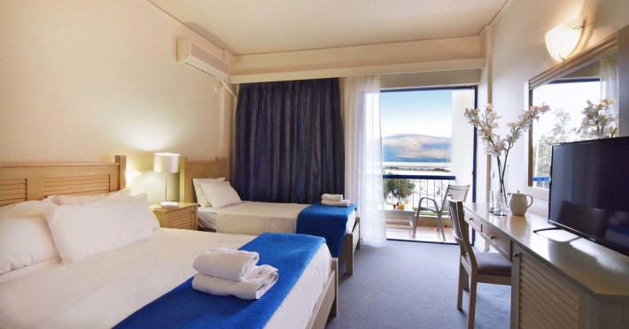 În camere există baie cu cadă sau duș ce are în dotare foehn și articole de toaletă gratuite. Camerele de la Ionion Star au în dotare aer condiționat și Tv. Unele camere au balcon cu vedere la mare, unde oaspeții pot admira apusul sau răsăritul soarelui. Oaspeții au la dispoziție serviciul de room service pentru a servi masa sau diverse băuturi. Oaspeții au acces gratuit la serviciul Wi-fi în camere. Proprietatea oferă camere pentru familie cu o suprafață mai mare și un număr mai mare de paturi față de cele standard.