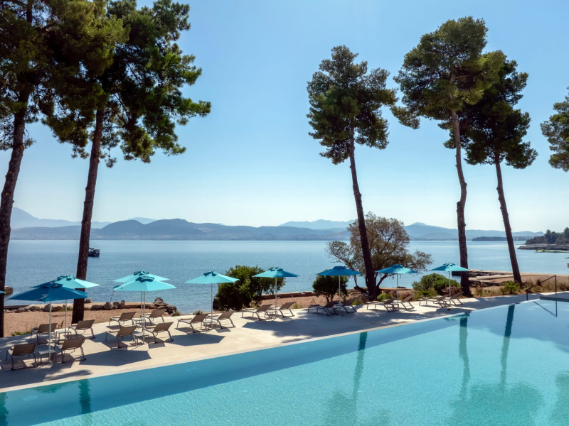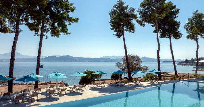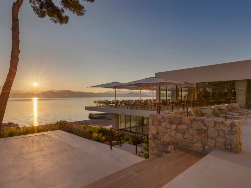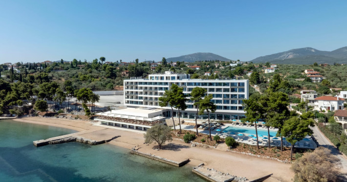 Luxury resort in the town of chalkida at the beach of saint minas, only 80 kilometres from athens and athens international airport(ath).The main hotel building consists of 100 rooms and 3 suites, all offering panoramic sea view of the euboean gulf and the mountain of dirfis.At the ground floor there is the reception, lounge area and the lobby bar. At the same level the main restaurant and its terrace are operating along with the buffet and the show cooking.The infinity pool overlooking the sea is surrounded by daybeds, sunbeds, umbrellas and pine treees.The beach area is served by the beach bar / restaurant. At the same floor there is a fully equipped gym and the wellness / spa centre (soon to open).Conferences / meetings / events can be held in one of our 3 event rooms.The parking is easy,private and offered within the hotel's premises.One tennis court is soon to be open, as well as a yoga pavillion.Luxury resort in the town of chalkida at the beach of saint minas, only 80 kilometres from athens and athens international airport(ath).The main hotel building consists of 100 rooms and 3 suites, all offering panoramic sea view of the euboean gulf and the mountain of dirfis.At the ground floor there is the reception, lounge area and the lobby bar. At the same level the main restaurant and its terrace are operating along with the buffet and the show cooking.The infinity pool overlooking the sea is surrounded by daybeds, sunbeds, umbrellas and pine treees.The beach area is served by the beach bar / restaurant. At the same floor there is a fully equipped gym and the wellness / spa centre (soon to open).Conferences / meetings / events can be held in one of our 3 event rooms.The parking is easy,private and offered within the hotel's premises.One tennis court is soon to be open, as well as a yoga pavillion.
