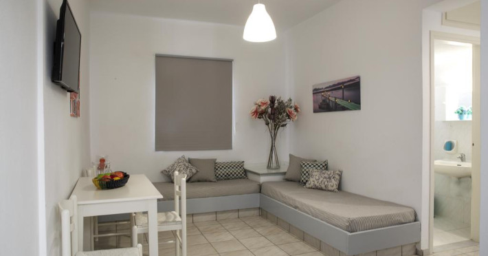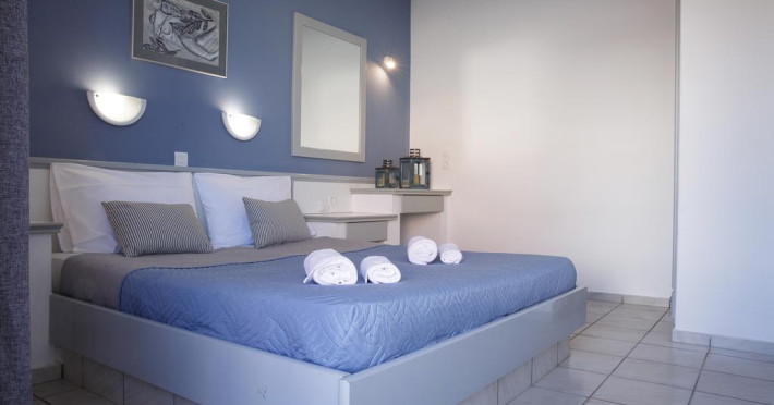 Sunt disponibile 14 camere. Unele camere au balcon, cu vedere la grădină, unde oaspeții se pot relaxa în compania celor dragi. Camerele confortabile de la Irene Beach sunt dotate cu pardoseală de gresie/ marmură, aer condiționat și Tv. În camere există baie cu duș prevăzută cu foehn. Oaspeții au acces gratuit la serviciul Wi-fi în camere. Curățenia in cameră se face zilnic. Toate camerele spațioase de la Irene Beach au zonă de relaxare. Fiecare unitate de cazare include o chicinetă utilată cu frigider, plită de gătit și ustensile de bucătărie. Proprietatea oferă camere pentru familie cu o suprafață mai mare și un număr mai mare de paturi față de cele standard. Se pot rezerva de asemenea camere pentru nefumători.