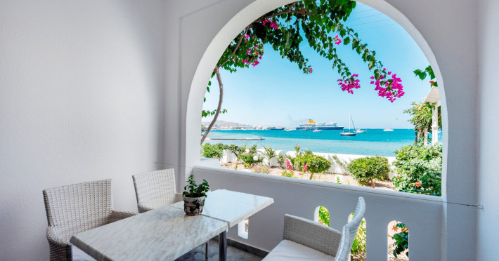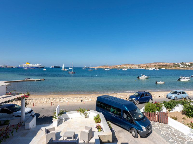 Experience the ultimate beachfront getaway at Irene Hotel and Studios in Paros. With captivating sea views from every angle, direct beach access to Livadia Beach, and the convenience of private parking, your seaside escape is a breeze.