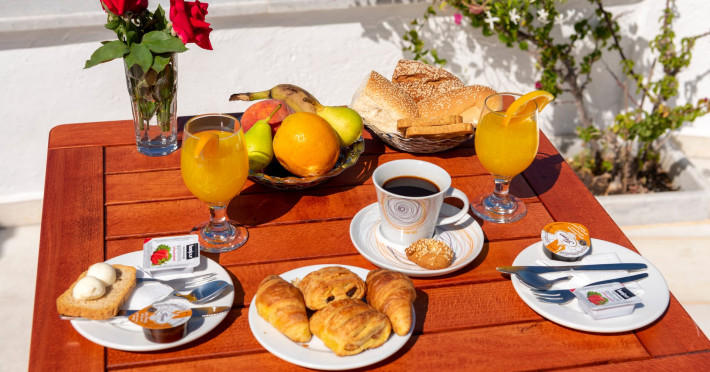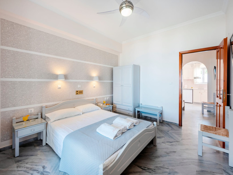 Our prime location puts you close to the bustling port and a variety of charming cafes, tavernas, mini markets, and restaurants for you to explore at your leisure. Plus, for added convenience, we offer car rental services to help you discover the island's treasures with ease.