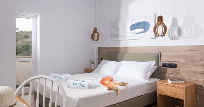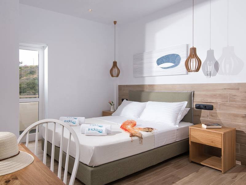 Descriere: Complexul este compus din Irida Hotel Apartments si irida Gardens. Irida Apartments este situat pe un deal cu vedere la golf si la satul pitoresc Agia pelagia; iar Irida Gardens (anexa) este situata chiar vizavi de Hotel Apartments, peste drum la o distanta de 40 m si este compus din 3 studiouri si 1 maisonette. Aeroportul din Heraklion este la 16 km de hotel.Plaja: Plaja este la 350 m de hotel.