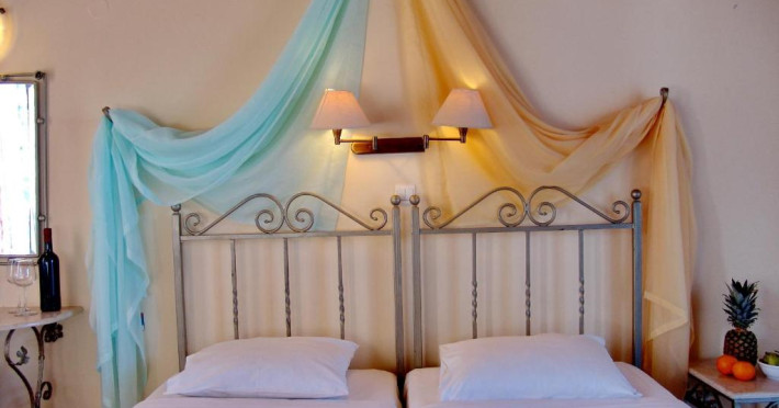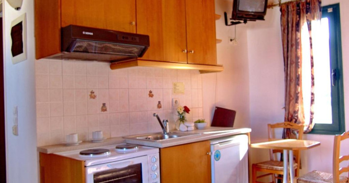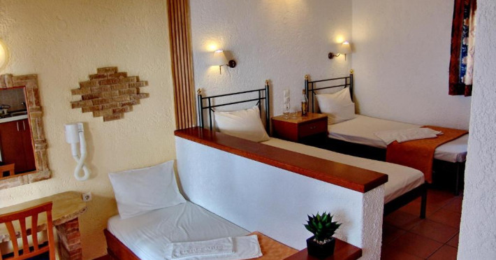 Studiourile si apartamentele de la Irida sunt decorate cu gust, in nuante pamantii si beneficiază de vedere la grădină sau la piscină. Au chicinetă dotată cu mini-frigider și ceainic electric, precum și baie privată cu duș sau cadă.