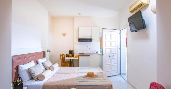 Hotelul Irida Apartments, situat la 500 de metri de cea mai renumită plajă din Malia, oferă unități de cazare in sistem self-catering cu balcon privat. Include, de asemenea, 2 piscine cu terasă la soare si un restaurant.