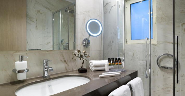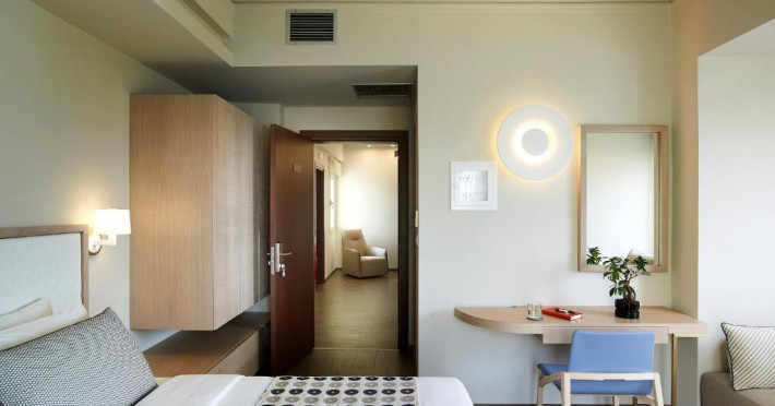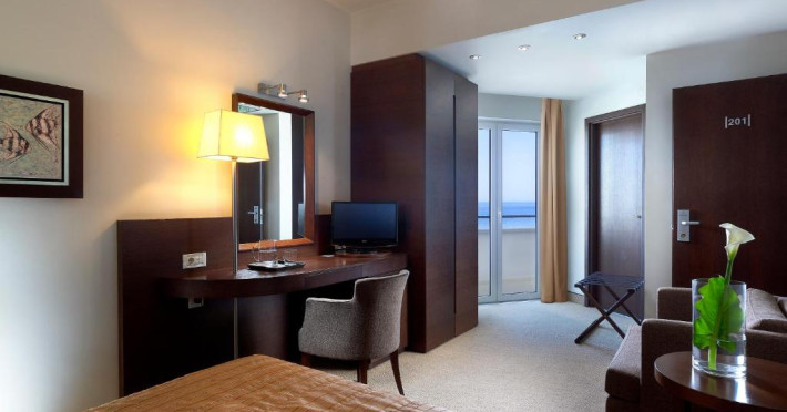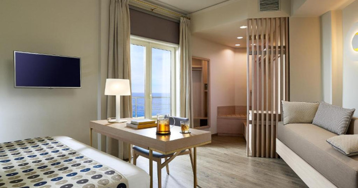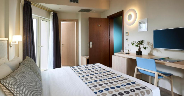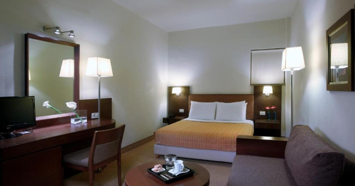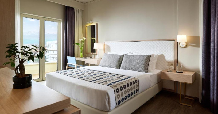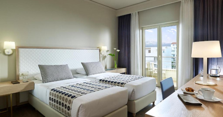 Sunt disponibile 23 camere. Camerele au balcon cu vedere la mare sau la oraș, unde oaspeții pot admira apusul sau răsăritul soarelui. În camere există baie cu cadă sau duș ce are în dotare foehn și articole de toaletă gratuite. Camerele confortabile de la Irida au pardoseală de gresie/ marmură, aer condiționat, Tv cu canale prin satelit și seif. Oaspeții au la dispoziție serviciul de room service pentru a servi masa sau diverse băuturi. Oaspeții au acces gratuit la serviciul Wi-fi în camere. Curățenia in cameră se face zilnic. Fiecare unitate de cazare are frigider. Proprietatea oferă camere pentru familie cu o suprafață mai mare și un număr mai mare de paturi față de cele standard. Se pot rezerva de asemenea camere pentru nefumători.