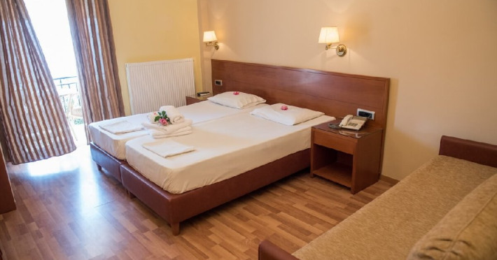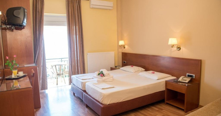 Localizare: Hotelul Irini este situat in centrul statiunii balneare Loutra Edipsou, Evia, la doar 10 m de plaja. Personalul foarte prietenos va ofera informatii despre zona inconjuratoare si va sta mereu la dispozitie.Facilitati camere: Cele 30 de camere ofera cazare in camere single, duble si triple. Camerele sunt decorate cu eleganta si ofera aer conditionat, incalzire, internet Wi-Fi, baie cu dus, uscator de par, frigider, TV, telefon, balcon.
