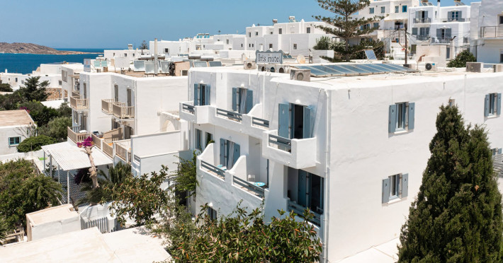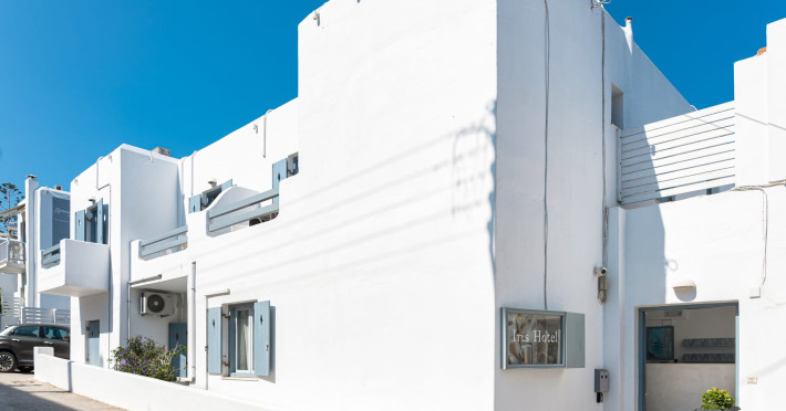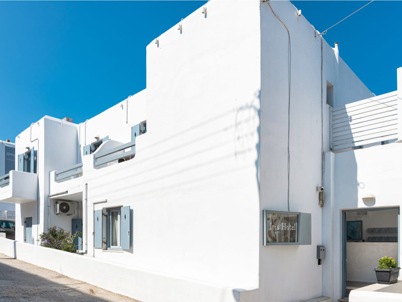 Iris hotel is a friendly and stylish 3 star hotel in Naoussa Paros. Its privileged position allows guests to access in just 2 minutes by foot Pepper beach and in 5 minutes from center of the cosmopolitan Naousa where the fish taverns, the picturesque streets, the traditional shops and the nightlife will enchant you as it is one of the most popular destinations of Cyclades. Its 15 rooms are well decorated with a Cycladic touch and can comfortably accommodate couples, group of friends or families who will enjoy their relaxing holidays in a friendly and tranquil environment. Iris hotel boasts idyllic sea view in 7 of its rooms, while all rooms are well equipped with air-conditioning, free wifi, refrigerator, safe, TV and hairdryer. Our guests can start their day with a rich and delightful breakfast buffet served from 8:30 to 11:00 in our peaceful patio, where they can also enjoy a glass of wine, beer or cocktail from our bar while reading a book or socialising with their friends. We are always present for our guests to help them with their requests to ensure they can enjoy a memorable holiday and feel the true Greek and Parian hospitality Iris Hotel offers.Datorita dinamicitatii domeniului disponibilitatea ofertelor se modifica de la un moment la altul. De aceea ofertele sunt valabile in limita locurilor disponibile. Agentia nu este responsabila pentru eventualele neconcordante care pot aparea intre informatiile privind tarifele si alte detalii din site si informatiile primite in agentie. In aceste cazuri vor avea prioritate, intotdeauna, informatiile primite in agentie.