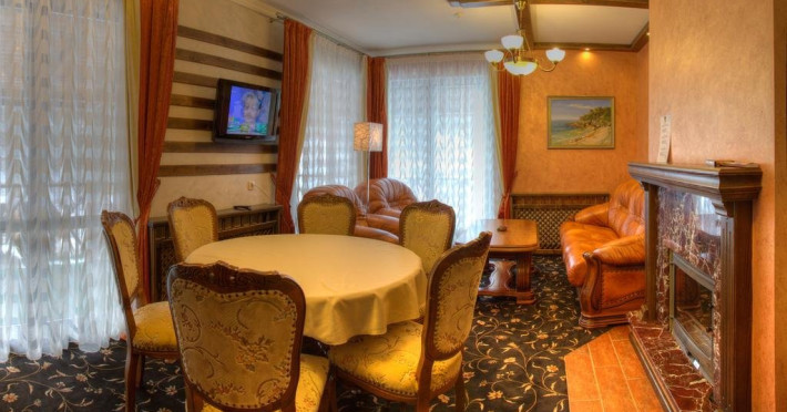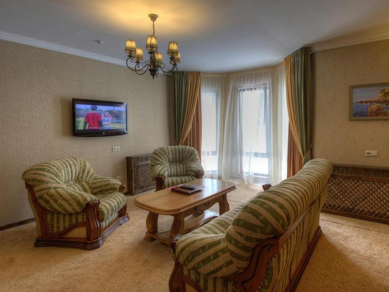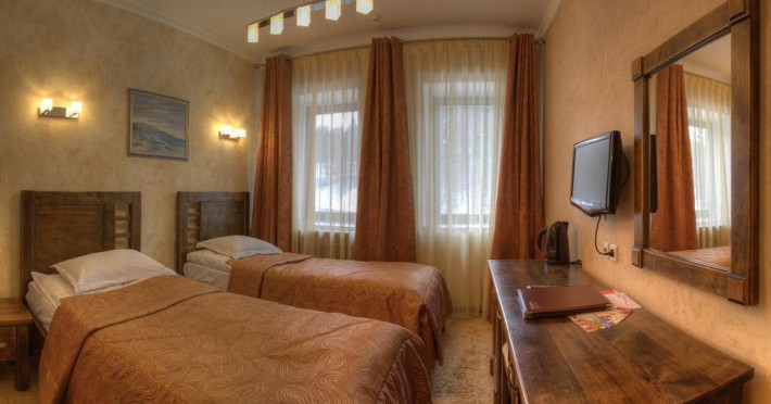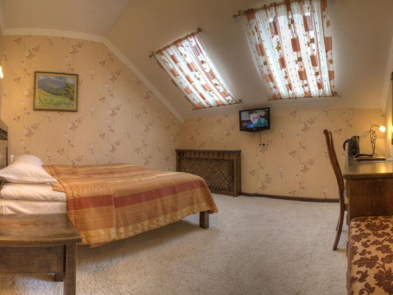 Localizare: Situat in statiunea de schi Bukovel, acest hotel este amplasat chiar langa teleschiul 5.Facilitati hotel: Centru SPA, internet Wi-Fi gratuit, birou de schimb valutar, bancomat, seif la receptie, sala de mic dejun, gradina, depozit de schi. Check-inul si check-outul se fac la receptia centrala a Bukovel Resort 3*.