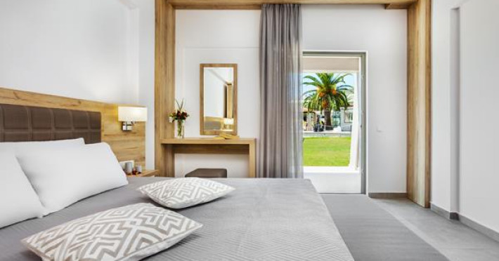 Iris Hotel is located in Siviri, a tranquil seaside settlement at the Kassandra peninsula of Chalkidiki. Siviri boasts of a sandy, blue-flag awarded beach, with crystal clear waters, along with various points of interest, such as taverns, bars and shops, whilst maintaining a calm atmosphere. Its proximity to the national road provides great accessibility; short trips within Chalkidiki can be carried out easily, whilst Thessaloniki, the second biggest city of Greece, is an hours drive afar. Nestled at one of the most laid-back areas of Kassandra, Iris Hotel is a 3* Hotel built at an area of 16 hectares. Its 93 rooms are positioned amphitheatrically, overlooking the pools and its large gardens, which consist of grass and olive trees, along with a variety of seasonal plants and large palm trees. The last renovation took place in 2019, with an extensive architectural redesign of the Main building, whilst in 2018, the Deluxe Room Wing was inaugurated. 57 Renovated Standard Double Rooms (22 sqm), with shower and balcony or terrace; on-demand and upon availability, Double Rooms can become triple, with a regular or a sofa-bed. There are also available rooms, specially designed for wheelchair accessibility. 12 Renovated Superior Double Rooms (26sqm), with shower and balcony or terrace 8 Quadruple Rooms (34sqm), with shower and balcony or terrace 12 Newly-Built Deluxe Double Rooms (30sqm), with walk-in shower and balcony or terrace 4 Newly-Built Suites (2+2) (40sqm), with a double bed and two sofabeds, with walk-in shower and balcony or terrace **All hotel rooms, apart from the Suites, consist of Single, Hotel-type Beds, of 90x200 cm, each. Their setup makes them a double bed, essentially, as there is no space in between and the total dimensions are larger than a queen bed. Moreover, all of the rooms, depending on the occupancy can fit in a baby-cot, except for the Deluxe Double ones.Datorita dinamicitatii domeniului disponibilitatea ofertelor se modifica de la un moment la altul. De aceea ofertele sunt valabile in limita locurilor disponibile. Agentia nu este responsabila pentru eventualele neconcordante care pot aparea intre informatiile privind tarifele si alte detalii din site si informatiile primite in agentie. In aceste cazuri vor avea prioritate, intotdeauna, informatiile primite in agentie.