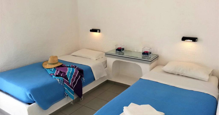 Camerele luminoase de la Iro Hotel sunt dotate cu aer condiționat, Tv și seif. Camerele au balcon cu masă și scaune unde pot fi petrecute momente de relaxare. În camere există baie cu cadă sau duș. Proprietatea oferă camere pentru familie cu o suprafață mai mare și un număr mai mare de paturi față de cele standard. Se pot rezerva de asemenea camere pentru nefumători.